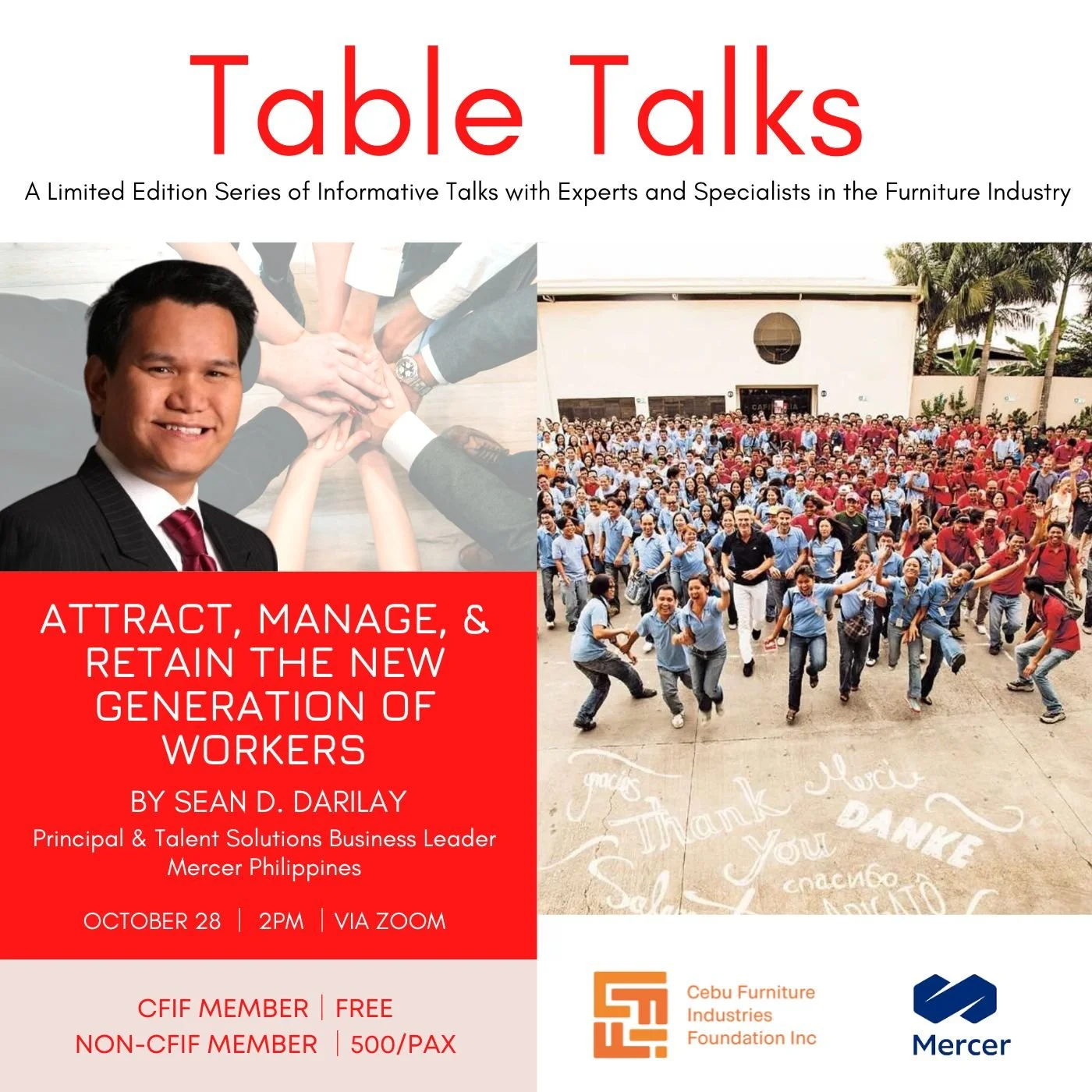 In the midst of the pandemic, the Cebu Furniture Industries Foundation launched the Table Talk Series, engaging talks and seminars by industry experts conducted through Zoom. This program has continued until today was an innovative way to share important and relevant industry information and tools. From effective digital marketing practices, the latest market trends, to the future of the business landscape in an AI-world—the Table Talk Series has provided our membership and community a convenient means of staying in the loop when it comes to industry must-knows!
